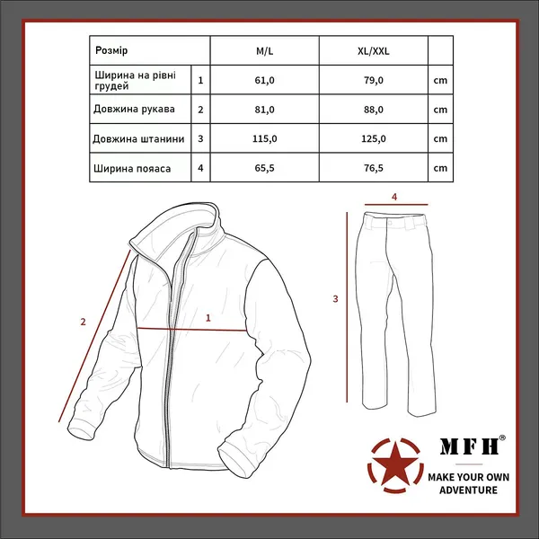 Костюм має вільний фасон, з еластичним поясом, тому ви можете одягати його поверх свого одягу зі спорядженням.