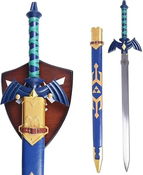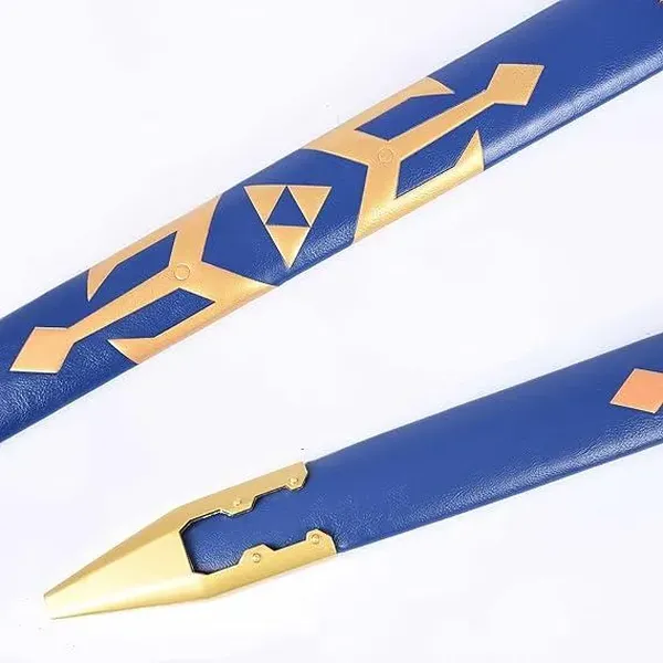 - Материал ножен: фурнитура из цинкового сплава, искусственная кожа с жесткой пластиковой оболочкой, фурнитура ножен: отделка под старину, эмблема Triforce. Особенности ножен: тисненый золотой узор.