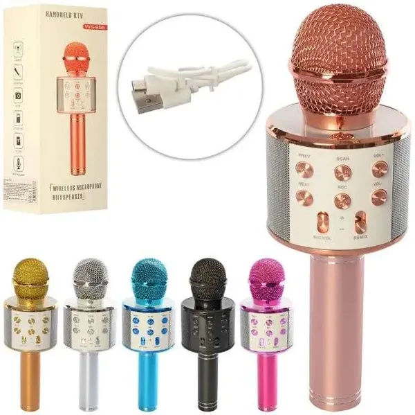 Ручная караоке система WS-858 - заслуженно называется мобильной! Микрофон имеет встроенный аккумулятор и качественный динамик, а значит, что он не привязан ни к розетке, ни к дополнительной акустике. Wireless Microphone Wster WS-858 отлично подойдет для домашнего использования, в качестве подарка ребенку или для профессиональной эксплуатации ведущим на праздник, вечеринку и другое торжество.