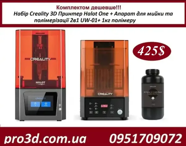 Набор Creality 3DПринтер Halot One + Аппарат для мойки и полимеризации 2в1 UW-01 + Creality Standard Resin 1кг
