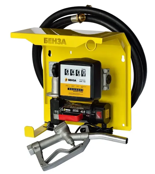 Паливозаправна колонка БЕНЗА 220-40 призначена для перекачування дизельного пального та є оптимальним рішенням у співвідношенні продуктивність/вартість для заправки сільськогосподарської, будівельної та іншої спеціальної техніки та транспорту у місцях з доступом до мережі живлення 220В. Зручний металевий корпус колонки дозволяє швидко монтувати її на стіну, стовп, борт автомобіля або стаціонарний чи мобільний резервуар утворюючи повноцінний заправний модуль. В основу колонки покладено самовсмоктуючий електричний насос БЕНЗА Н220-40 що забезпечує продуктивність до 40 л/хв та розвиває тиск на виході до 1,3 Бар. Насос обладнаний системою захисту від перегріву та здатний безперервно працювати до 30 хвилин, що дозволяє справитися з більшістю задач. Для обліку перекачаного пального застосовується простий у використанні механічний лічильник БЕНЗА БЛМ-100 з подвійним циферблатом. В якості паливороздавального крана використовується механічний пістолет MX-60M з вбудованою поворотною муфтою та заправним шлангом довжиною 4 метри. Всмоктувальний рукав підбирається окремо під потреби замовника та до комплекту постачання не входить. Додатково рекомендується встановлення фільтра тонкого очищення на вхідній магістралі колонки для запобігання передчасного псування її елементів. Паливозаправна колонка БЕНЗА 220-40 призначена для перекачування виключно дизельного пального. Перекачування алкоголю, води, гасу або бензину забороняється.