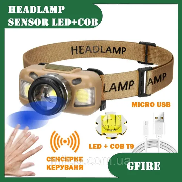 Фонарь налобный встроенный аккумулятор micro USB. IPX4