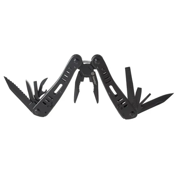 Мультитул Ganzo G103 цілком виправдовує звання «кишеньковою майстерні». При вазі 250 грамів і довжиною в складеному вигляді всього 10,5 см, він має 21 функцію. Цей інструмент допоможе вам усунути несправності велосипеда, туристичного спорядження, спорядження мисливця або рибалки. І в домашньому побуті він знадобиться не один раз. Одне з основних переваг такого мультитула — наявність повноцінних плоскогубців з потужними пружними губками, вбудованими кусачки для дроту і ребристим захватом для предметів круглої форми. Крім того, в порожніх зсередини руків'ях мультитула розміщуються відкривачка для пляшок, дві плоскі і хрестоподібна викрутка, шило (його можна використовувати як маленький ніж), лінійка, на зворотному боці якої — напилок, два клинки (гладкий і з серейторной заточкою). Також є тримач для біт з квадратним перетином. Самі ж біти додаються в окремому органайзері: 8 змінних насадок і перехідник.