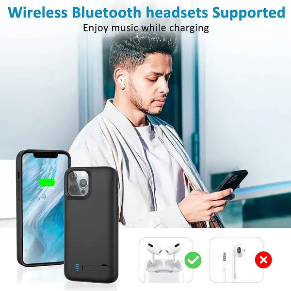 【Чехол с перезаряжаемой батареей 6000 мАч】Этот портативный чехол для зарядки ТОЛЬКО для iPhone 11 . Этот чехол для зарядного устройства, оснащенный массивным литий-полимерным аккумулятором емкостью 6000 мАч, продлевает срок службы аккумулятора вашего Apple iPhone 11 более чем на 200 %. Идеально подходит для путешествий, деловых поездок или других мероприятий на свежем воздухе. Оставайтесь заряженными, куда бы вы ни пошли, с чехлом-аккумулятором Apple iPhone 11
