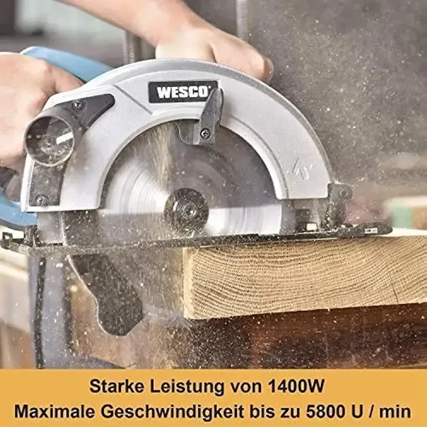 Циркулярная пила, электрическая пила WESCO 1400 Вт, 5800 об/мин, 24T/48T, 185 мм циркулярное пильное полотно