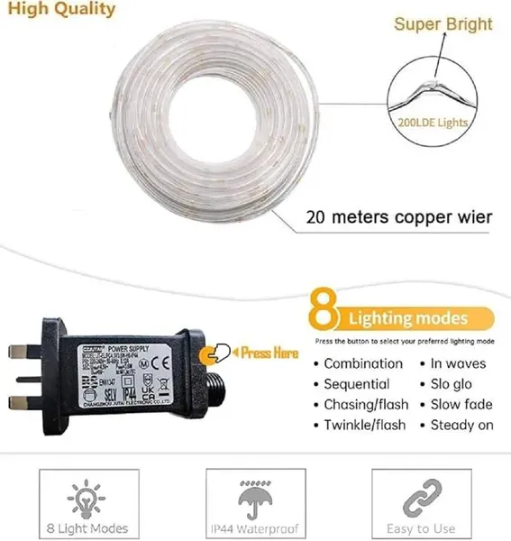 - 【Гибкая крышка из ПВХ-трубки】 Этот уличный светильник-веревка с 66-футовым медным проводом, который полностью покрыт прозрачными ПВХ-трубками, теплые белые светильники-веревки прочные и гибкие, но достаточно тонкие, чтобы обернуть их любым способом, чтобы создать светящегося персонажа, например, снеговика или супергероя, или уникальные надписи, добавив дополнительного веселья вашим мероприятиям на открытом воздухе или в помещении. 200 светящихся светодиодов с устойчивым углом обзора 360 градусов освещают все направления. Просто включите свое воображение!