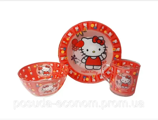 Набор детской стеклянной посуды из 3-х предметов "Hello Kitty".
