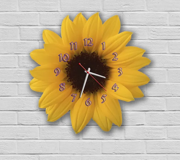 Оригинальные ЗД часы настенные фигурные на кухню Erpol Подсолнух 30х30 см
