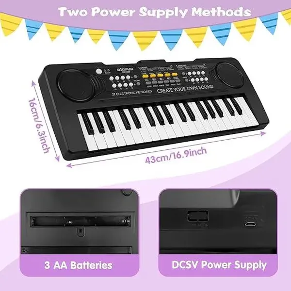 Клавиатура пианино с 37 клавишами: маленькое пианино с музыкальной клавиатурой имеет функцию записи и воспроизведения, дети могут записывать собственные творческие мелодии и воспроизводить их. И мини-клавиши, специально разработанные для детских пальчиков, чтобы тренировать произношение одним пальцем. Идеально подходит для обучения, домашний театр. Давайте наслаждаться счастливым временем игры на электронном пианино с детьми!