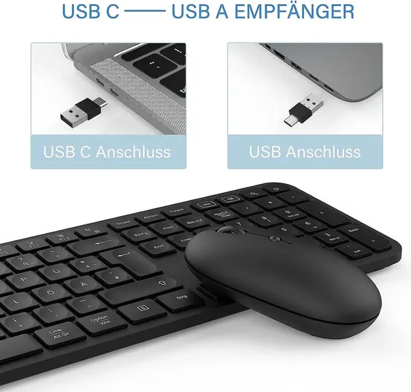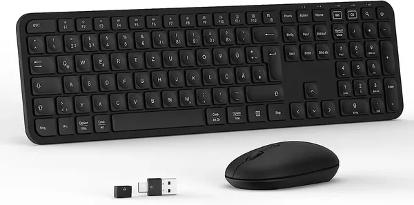 Комплект беспроводной клавиатуры и мыши 2,4G, эргономичная полноразмерная беспроводная клавиатура QWERTZ и беспроводная мышь для ПК, ноутбуков, ноутбуков, планшетов, Smart TV, MacBook, iMac с системой Mac OS / Windows, раскладка на немецком языке, черный