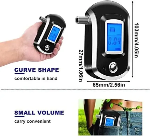 Высокая точность: тестер алкоголя с профессиональной конструкцией дыхательных путей и высокоточным полупроводниковым датчиком, проверяет концентрацию алкоголя в крови более точно и быстро. Победитель теста с 99,1%, диапазон 0,00% ~ 0,2% BAC/0,0~1,9 г/л. Цифровой дисплей без подсветки.
